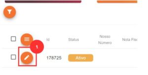 Para editar uma conta existente, utilize os filtros do sistema para localizá-la e clique no ícone de lápis ao lado do registro.