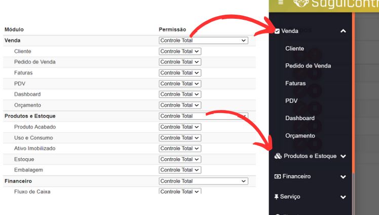 - Leitura: Permite que todos os usuários desse grupo apenas visualizem os registros dentro do módulo, sem permissão para fazer alterações.