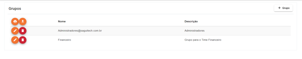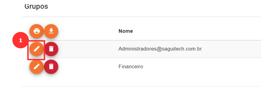 Para editar um grupo existente clique no botão de lápis ao lado do registro do grupo desejado