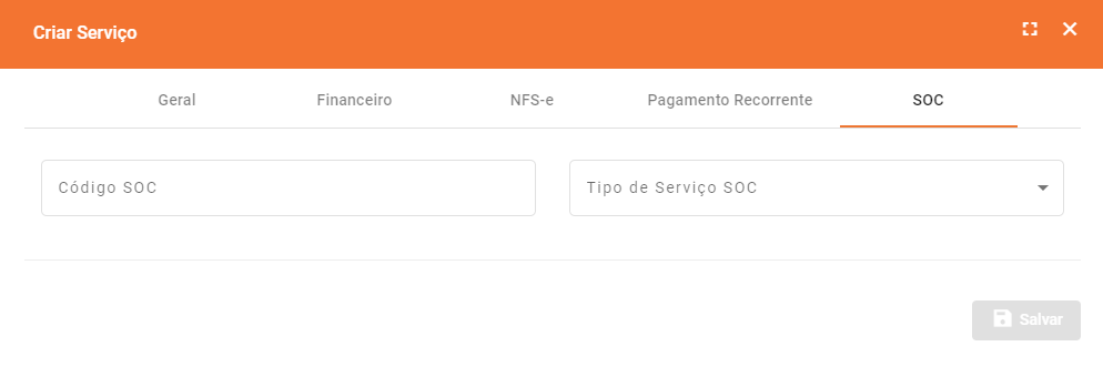 - Código SOC: Cadastre um código SOC único para que o Serviço possar ser identificado claramente;