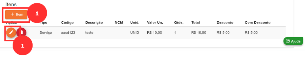 Para editar filtre o orçamento desejado e clique no botão com símbolo de lápis do lado esquerdo do orçamento.