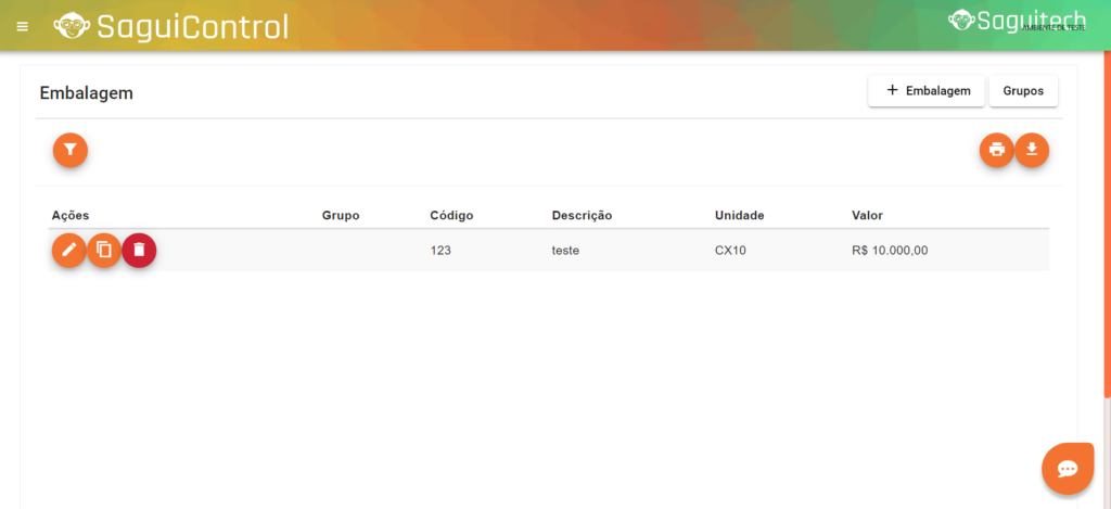🔍 Para entender mais sobre essa tela acesse: Entenda a Tela de Gestão de Embalagens no Saguicontrol