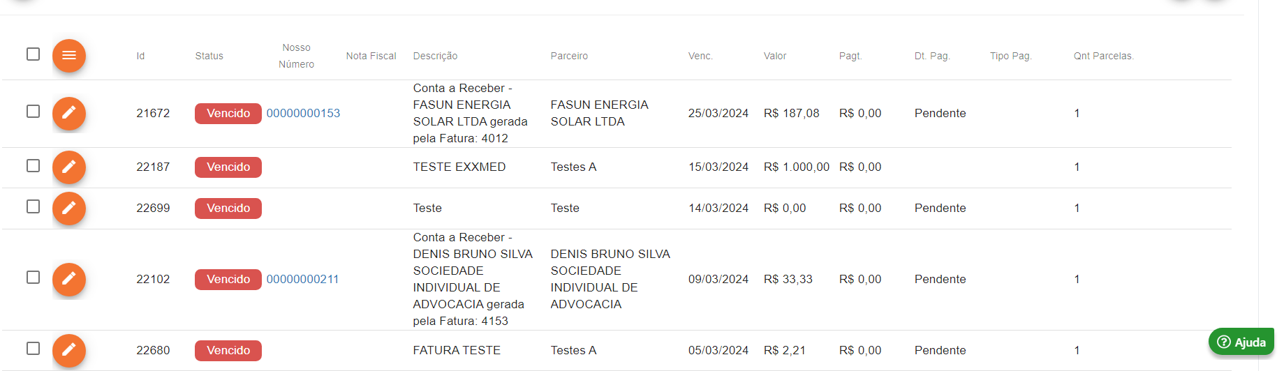 Agora, se você quiser editar uma Embalagem, clique no botão com símbolo de lápis do lado esquerdo da Embalagem desejada. ![]()