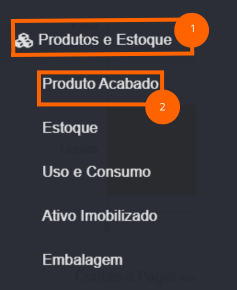 Acesse Menu > Produtos e Estoque > Produto Acabado