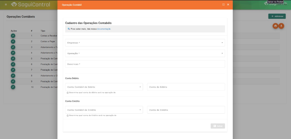 As operações contábeis no SaguiControl são essenciais para o registro e controle das transações financeiras e contábeis da sua empresa.