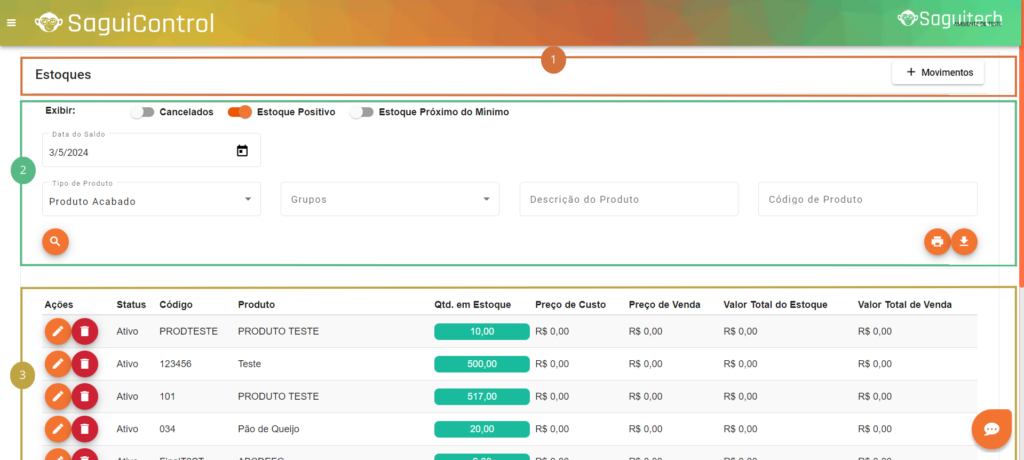 Neste tutorial, vamos explorar em detalhes a tela de gestão de Estoque do SaguiControl.