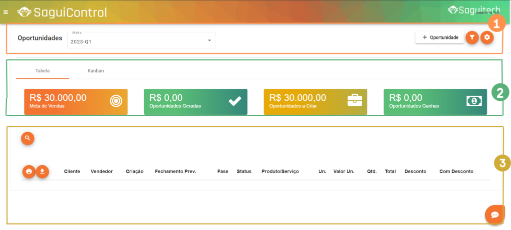 Neste tutorial, vamos explorar em detalhes a tela de Gestão de Oportunidades no SaguiControl.