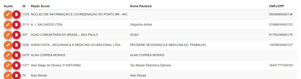 2 – ID: Identificador único do fornecedor no sistema. Este campo é gerado automaticamente pelo Saguicontrol e serve para diferenciar um fornecedor dos outros de forma única.