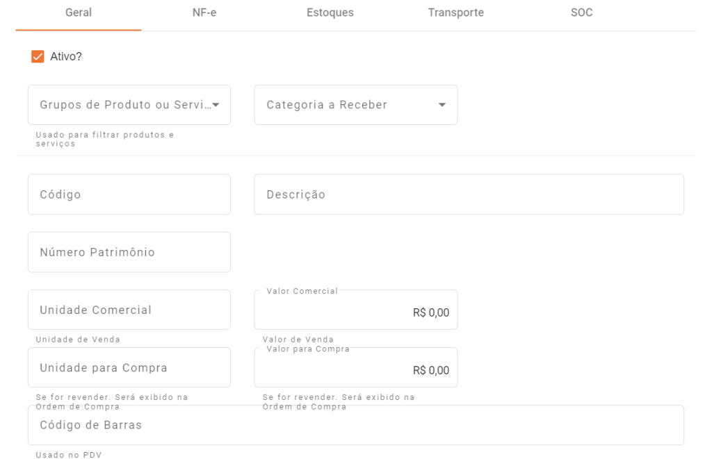 - Grupos de Produtos ou Serviço: Classifica o Ativo em um grupo específico de produtos ou serviços, facilitando a organização e a gestão dos Ativos Imobilizados;