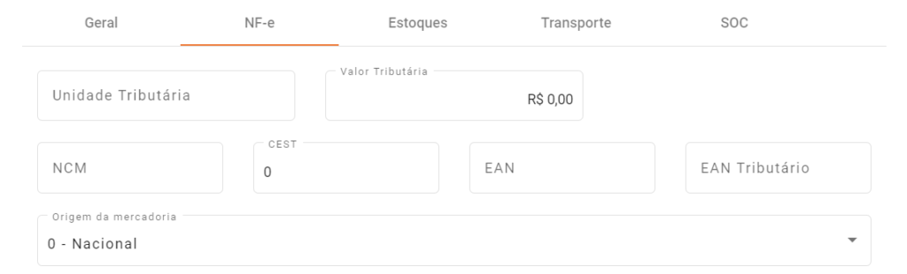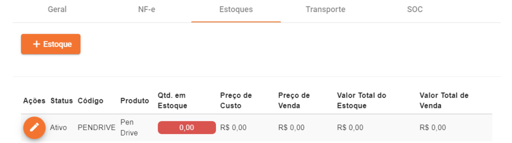 Esta aba permitirá que você crie um novo Estoque ou edite um existente.