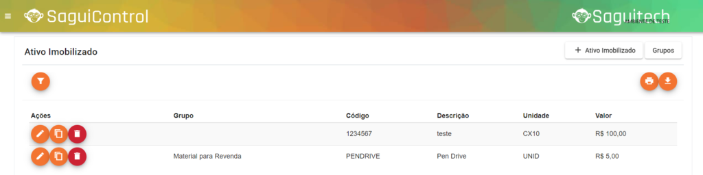 🔎 Para saber mais sobre a tela de Gestão de Ativos, acesse: Entenda a Tela de Ativo Imobilizado no SaguiControl