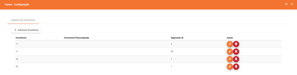 Para Editar uma Ocorrência existente, clique no botão de Edição em frente a Ocorrência desejada;