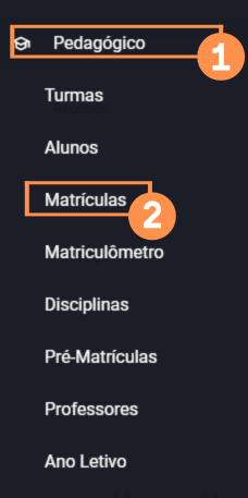 No menu superior a esquerda, acesse Pedagógico > Matrículas