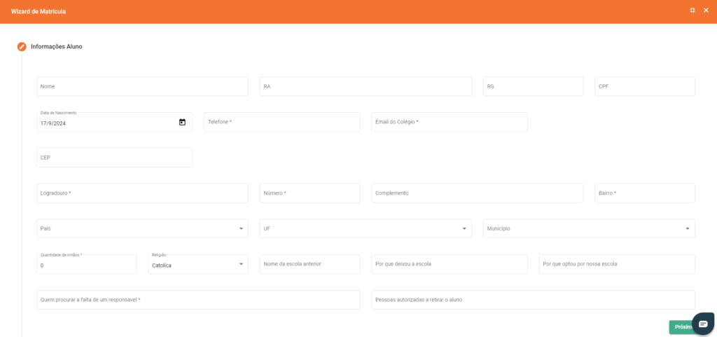 - Religião: Religião do aluno (opcional).Nome da Escola Anterior: Nome da última escola frequentada pelo aluno;