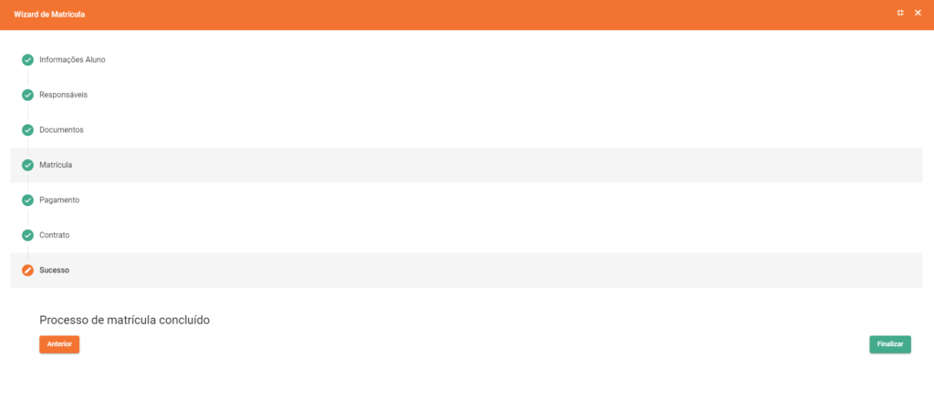 Ao clicar em “Finalizar”, a criação da Matrícula estará concluída, e a partir deste momento constará no sistema como Ativa.
