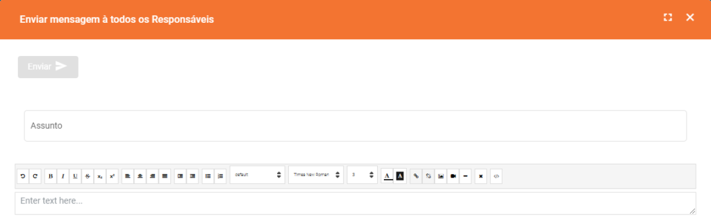 - Campo de Edição: Crie o e-mail com todas as informações necessárias, podendo anexar imagens, documentos, entre outras informações que o Editor possibilita.